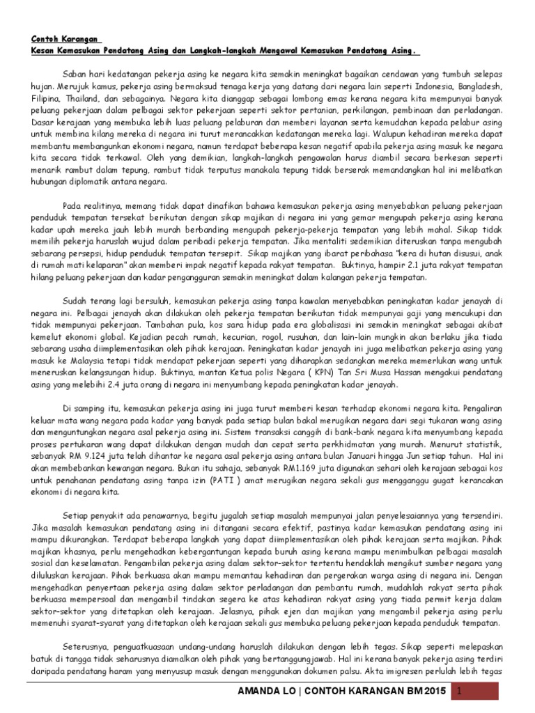 Sebagai hasilnya, wujudlah peluang pekerjaan yang meluas dan timbul masalah kekurangan tenaga kerja. Di samping itu, kemasukan pekerja asing ini juga turut memberi kesan terhadap ekonomi negara kita. Hubungan mereka secara seksual dengan pelacur tempatan akan mempercepat jangkitan aids. Lambakan pendatang asing tanpa izin akan memberi kesan kepada negara kita dari segi semua aspek iaitu ekonomi,sosial dan politik. Download faktor kedatangan pendatang asing tanpa izin (final). So please help us by uploading 1 new document or like us to download Senario pendatang awam tanpa izin di sabah bukanlah sesuatu yang baru. Kebanyakan mereka berasal dari kawasan mundur di negara asal. Itu sasaran jabatan imigresen yang meletakkan matlamat. Kedatangan pendatang asing, khususnya yang tanpa izin, juga mendatangkan masalah perumahan. Kedatangan pendatang asing, khususnya yang tanpa izin, juga mendatangkan masalah perumahan. Pendatang asing adalah kedatangan sekumpulan manusia atau seseorang dari sesuatu negara ke negara lain dengan tujuan khusus. Antara inisiatif yang diambil untuk tujuan itu ialah ops benteng bagi menangani kehadiran pati yang.